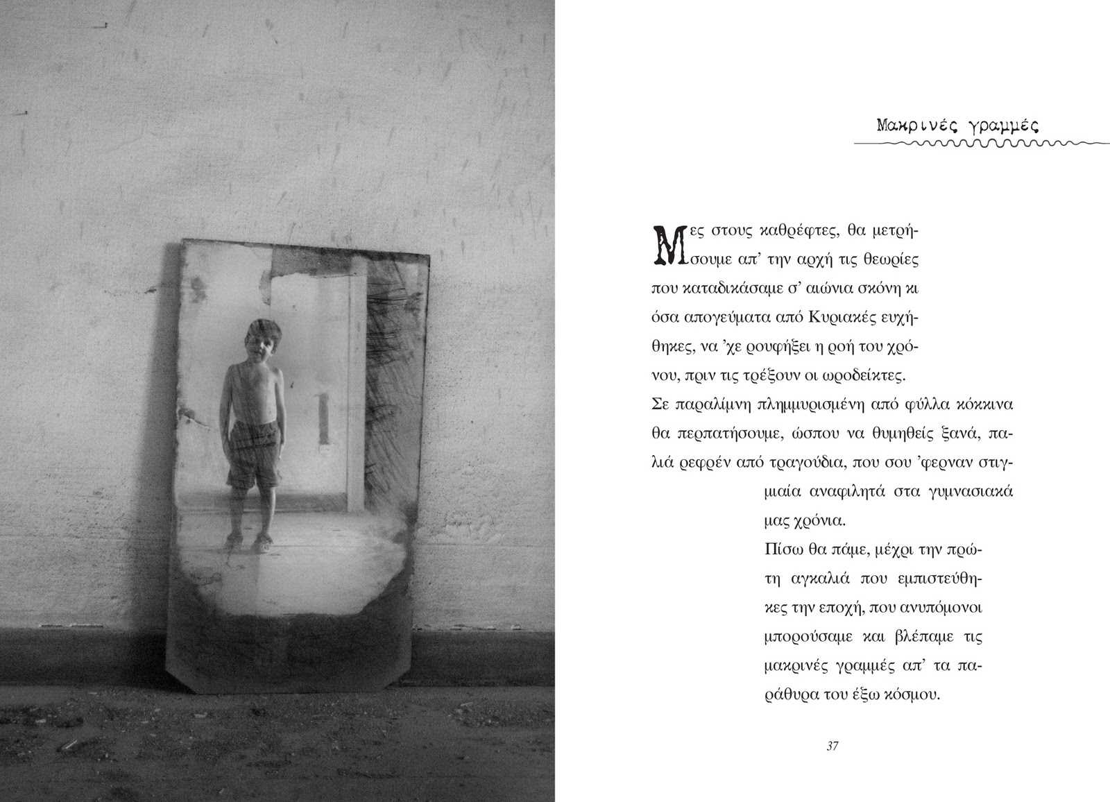 Μες στους καθρέφτες, θα μετρήσουμε απ’ την αρχή τις θεωρίες που καταδικάσαμε σ’ αιώνια σκόνη κι όσα απογεύματα από Κυριακές ευχήθηκες, να ’χε ρουφήξει η ροή του χρόνου, πριν τις τρέξουν οι ωροδείκτες.